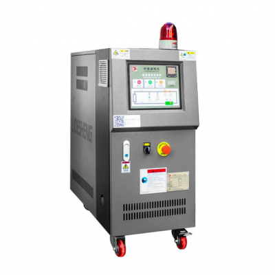 模温机控制系统是模具成型中的一个重要系统,关系到控制模具型腔内温度的冷却降温及预热升温,促使模具型腔内温度以满足注塑产品持续生产温度的需求,和塑件成型外观所须的温度。模具温度控制机由水箱、加热冷却系统、动力传输系统、液位控制系统以及温度传感器、注入口等器件组成。其工作原理是由动力传输系统中的泵使热流体从装有内置加热器和冷却器的水箱中到达模具,之后经模具回到水箱;温度传感器测量热流体的温度并把数据传送到控制部分的控制器;控制器调节热流体的温度,从而间接调节模具的温度。如果模温机在生产中,模具的温度超过控制器的设定值,控制器就会打开电磁阀接通进水管,直到热流液的温度,即模具的温度回到设定值。如果模具温度低于设定值,控制器就会打开加热器。以此循环工作。